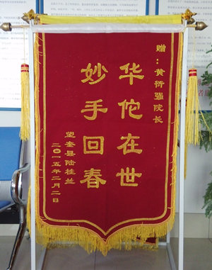 院长寄来感谢信,并赠送锦旗。陆桂兰女士于1999年3月26日经哈尔滨医大二院确诊为急性粒-单核细胞白血病即M4,前后共化疗7次,虽然化疗皆缓解,但是却引发了糖尿病及萎缩性胃炎,并伴有乏力、头昏、纳差等症状。为了更好地康复,陆桂兰女士于2000年4月23日来我院接受中医治疗,用药效果显著。现已正常生活14多年。