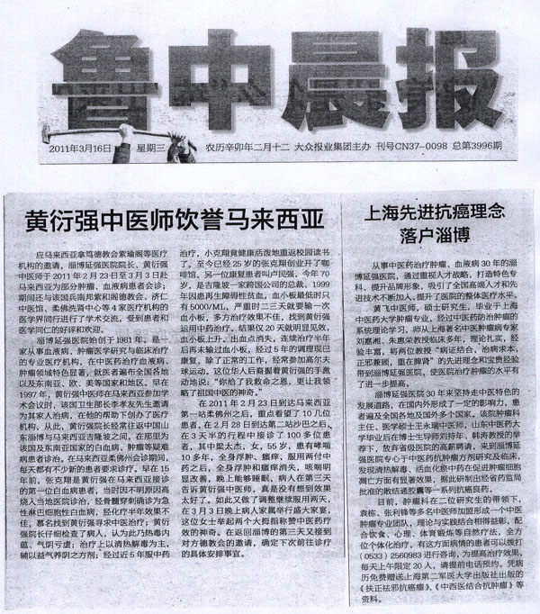 鲁中晨报:黄衍强中医师饮誉马来西亚
