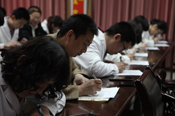 3月28日,我院业务知识考核第一阶段考试在医院会议室进行。考核范围为我院的基本情况和血液病、肿瘤两大专科知识。试题总分100分,时间为40分钟,韩克敏副院长监考。在考试期间,员工们严谨认真,充分发挥了自己的能力,展示了自己的水平。答题最快的员工用时24分钟。
