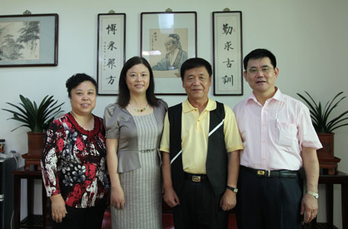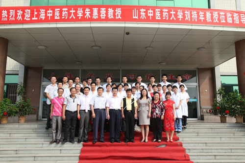 黄飞中医师的导师,上海中医药大学曙光医院肿瘤科朱慧蓉教授,师从全国著名肿瘤专家刘嘉湘教授,临床经验丰富。王永瑞先后师从山东中医药大学刘持年教授、韩涛教授。刘持年教授现为山东中医药大学中医方剂学教研室教授、博士研究生导师、中医学博士后流动站合作教授,兼任北京中医药大学博士研究生导师、中华中医药学会方剂学分会顾问、中国实验方剂学杂志编委、中华现代临床医学杂志编委、山东中医药学会常务理事,2001年被授予全国优秀教师荣誉称号,2003年被授予山东省名中医药专家。先后多次应邀赴国外进行学术交流。韩涛教授现为山东中医大学基础医学院方剂教研室教授,针灸推拿学院院长,兼任中华中医药学会方剂学分会委员会委员、《中国实验方剂学杂志》编委、《中华现代中西医杂志》学术委员会委员。 三位导师在参加婚礼期间对我院进行参观指导。