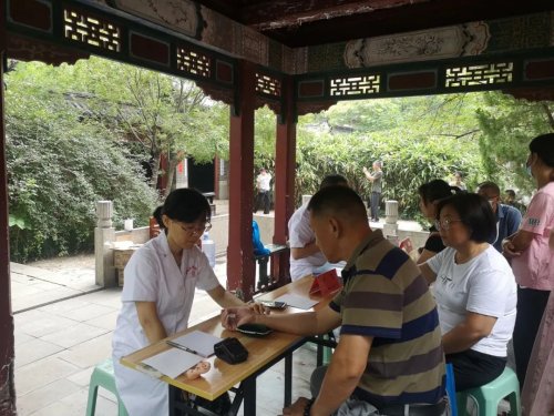 9月10日9时,黄衍强名中医团队的黄飞主治中医师、袁梁中医师来到淄川聊斋园景区的小翠亭,为前来就诊的广大群众进行中医诊脉健康体检,引导大家开展秋季养生茶饮科普体验,向前来咨询的患者赠送中医科普知识环保手提袋礼包等。活动刚开始,小翠亭就排起了长长的队伍。