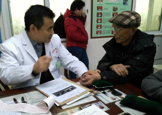 ▲ 黄院长向李慎濂老人介绍外出服药注意事项。