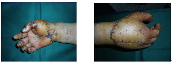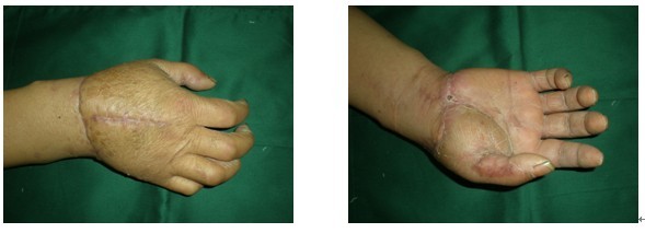 患者王某某,男 ,45岁 淄川区商家镇双山村人,于2011年4月12日不慎被车床挤伤右手腕部后完全离断,伤后急来我院,急症手术断腕再植,手术7小时,顺利再植成功,术后稳定,现已病愈,于4月28 日出院。