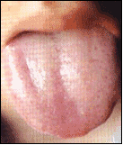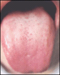 值得往意的是,热因饮郁,水饮湿浊之邪盛于外而上溢于舌,使舌苔白而厚腻,并不现黄苔;然毕竟中郁有热邪,故可见心烦干呕,时欲饮水,当辨这种病变不同于湿热郁蒸之现黄苔。临床多见于支气管哮喘、肺气肿、肺心病、风湿性心脏病、心衰等重症病人的舌象。此类舌象的病人一般病情较复杂,治疗宜按辨证施药。也可按证试用部分中成药。常用的此类中成药有:小青龙合剂、苏子降气丸、止嗽定喘口服液、玉屏风口服液、洋参保肺口服液、蛤蚧定喘丸、生脉散口服液、冠心生脉口服液、活心丸、血府逐瘀口服液益心口服液、安神养心丸等。