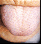 8、白苔燥裂舌象:为苔色白,可薄可厚,颗粒粗糙而疏松,干燥且质硬,望之如砂石,扪之糙手,即为白糙苔,若颗粒较细,质地板硬,巳布有纵横裂纹,称白苔燥裂。