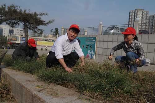 10月10日,山东省淄博延强医院的城市文明志愿者在淄川城区柳泉广场南的绿化带中清理杂草。当日,淄博延强医院城市文明志愿者协会成立,全院86名医护人员积极响应,全部加入。从现在开始,他们利用每个星期天,轮流分批到淄川城区街头清理杂草、打扫卫生、清理非法广告等,做文明城市的倡导者和践行者。