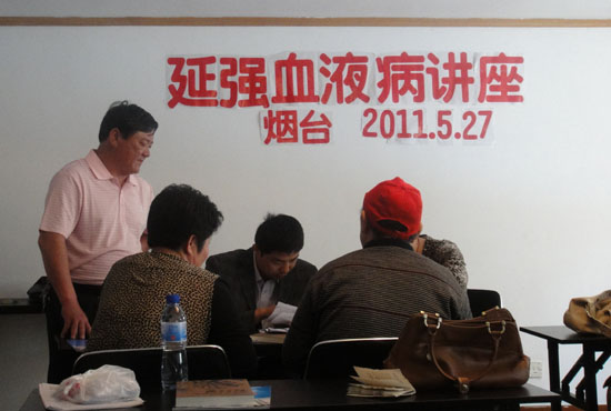 应烟台广大血液病患者的邀请,我院特派两位医学硕士王永瑞中医师和黄飞中医师于2011年5月27日于烟台进行了血液病康复知识讲座和咨询诊疗活动。