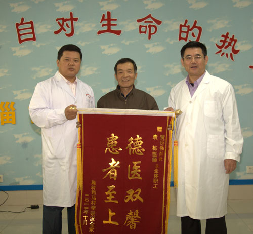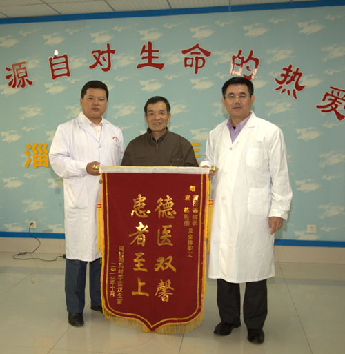中这位和淄博延强医院院长、副主任中医师黄衍强、中医师袁栋合影的老者叫李宗汉,今年58岁,家住周村区西马村;你看他面色红润,目光炯炯,神态自若,如果不知情,很难把他与肿瘤病人联系在一起,然而,他的确是一位经淄博延强医院运用中医治疗获得满意疗效的胃肿瘤术后病人。
